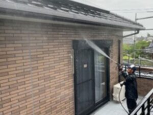 高圧水で汚れや古い塗膜を丁寧に除去し、